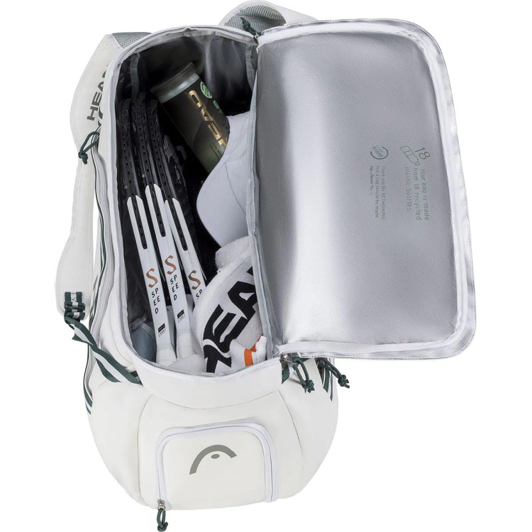 کمی کوچکتر از Pro X Duffle Bag XL بوده و دارای تقسیمکنندههای قابل تنظیم است. فضایی برای حداکثر شش راکت، یک کیف کفش یکپارچه و تعدادی جیب لوازم جانبی داخل و خارج برای تمام وسایل شما وجود دارد. Pro X Duffle Bag L با بند های قابل تنظیم کوله پشتی خود یک کیف بسیار کاربردی است و ساخته شده از کاغذ بازیافتی و طناب کنفی، نشان می دهد که چگونه HEAD مسئولیت خود را برای پایداری بیشتر و کمک به محافظت از سیاره نشان می دهد.